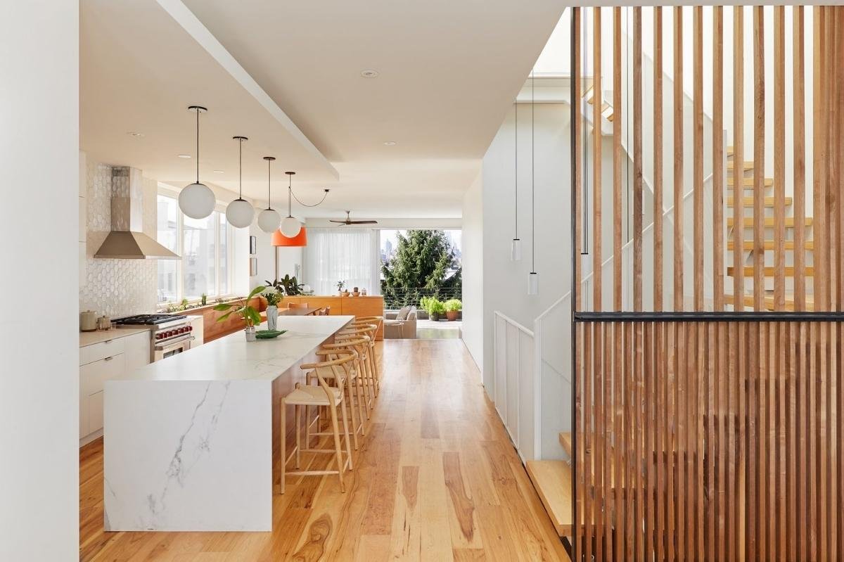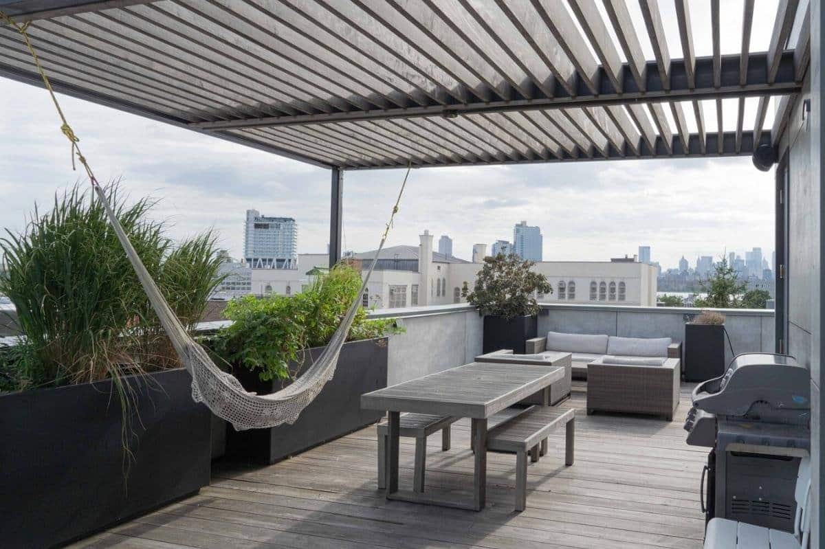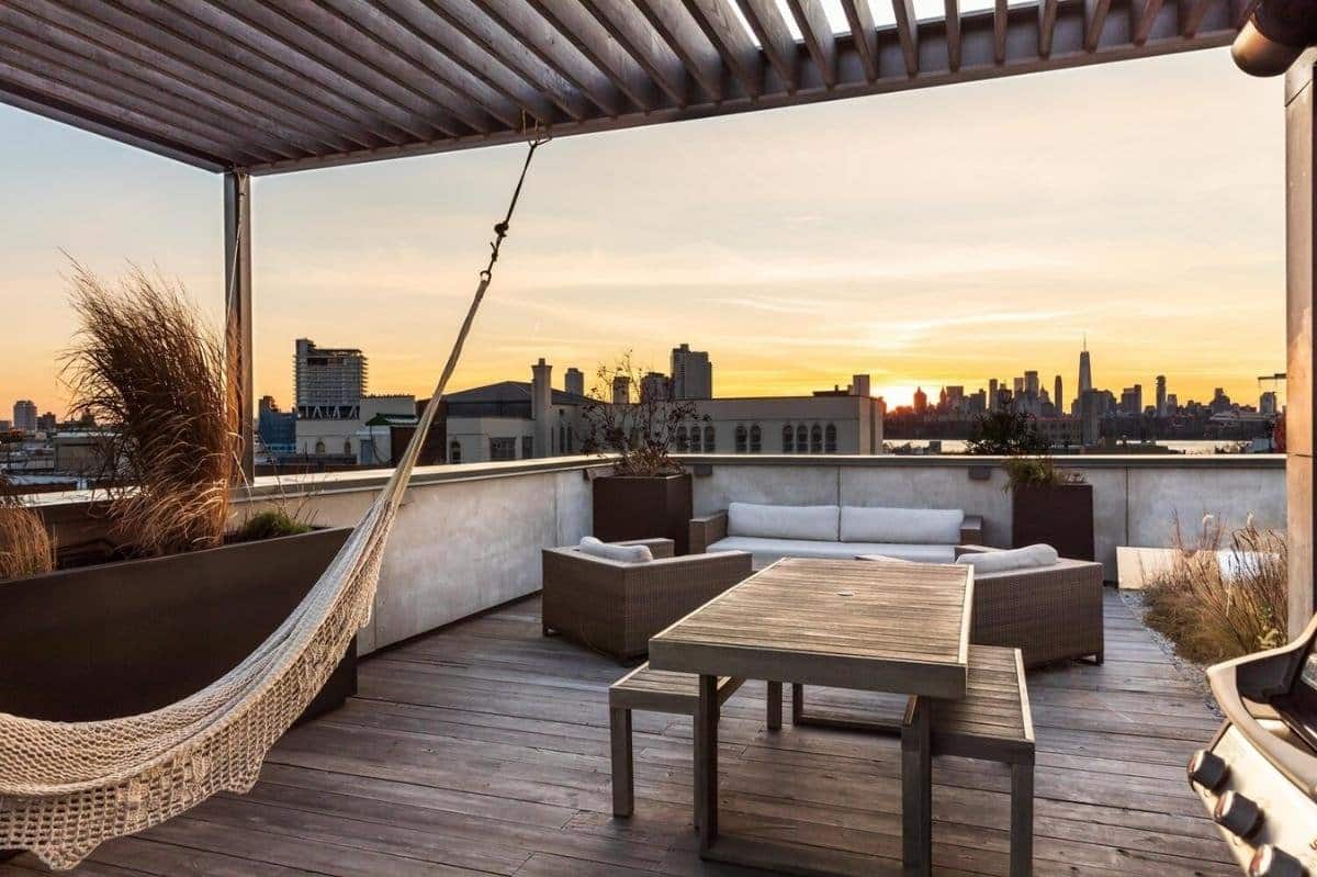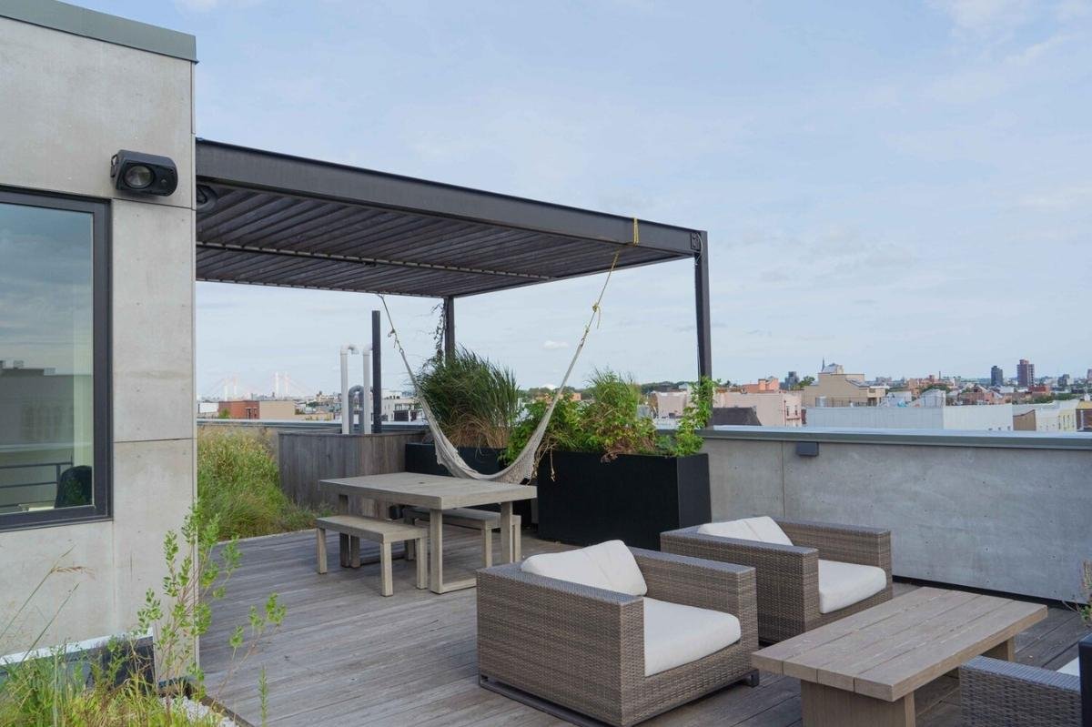 A quiet haven in the heart of Greenpoint, Brooklyn, this 3,000 square-foot penthouse loft offers an open layout on two floors and an abundance of natural light. The space boasts unbeatable views of the Brooklyn and Manhattan Skyline, and possesses a bright and warm character with high-quality finishes that exude an elevated elegance. The open kitchen, rooftop terrace, 2 bathrooms, and a living room that opens up directly to a second terrace lounge makes this space a go-to for all producers, meetings, and events organizers.