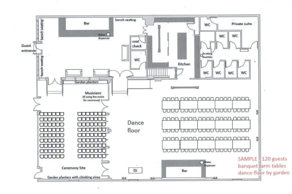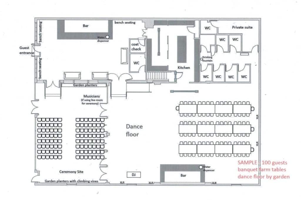 Equipped with an in-house sound system and a built in projection system. Based upon the needs of your wedding, an in-house A/V technician familiar with our systems may be required at an additional fee.