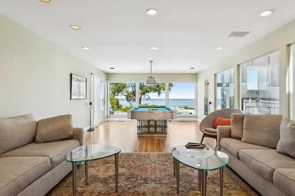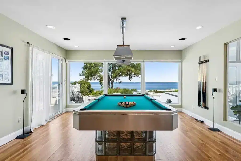 Has a pool table and amazing water views