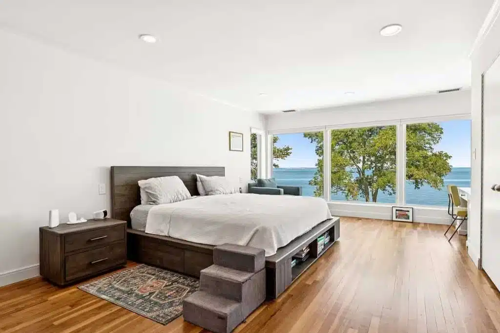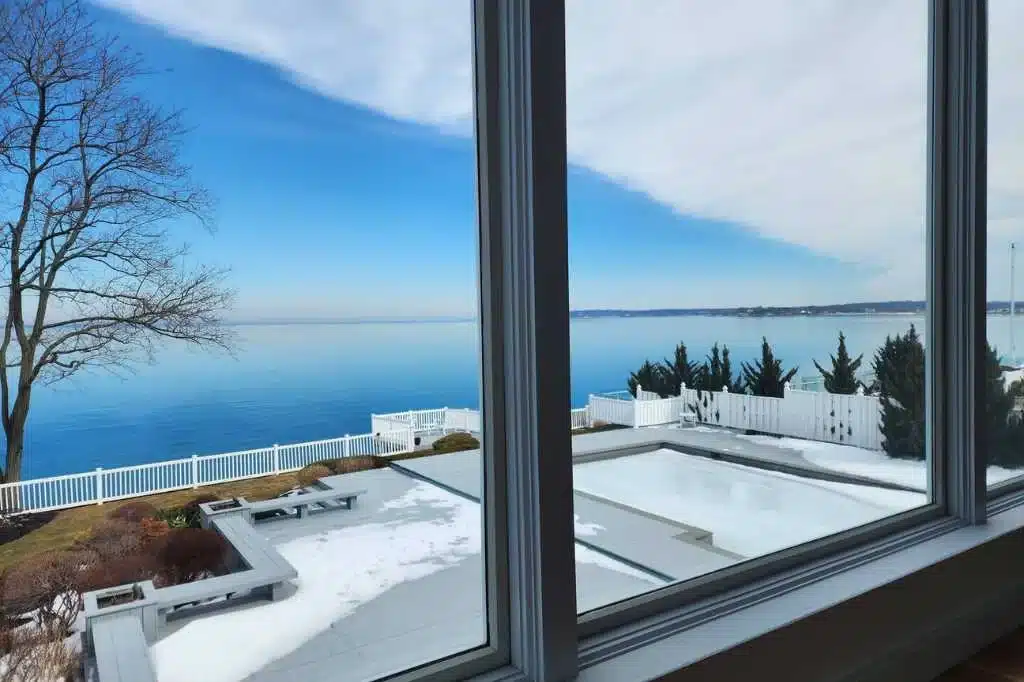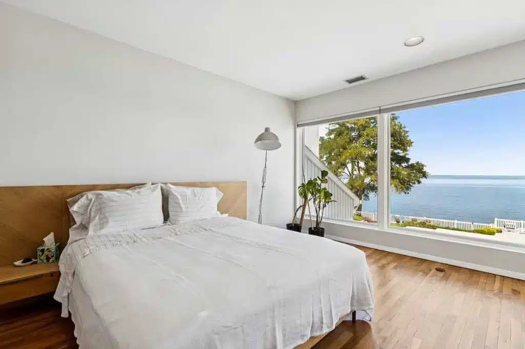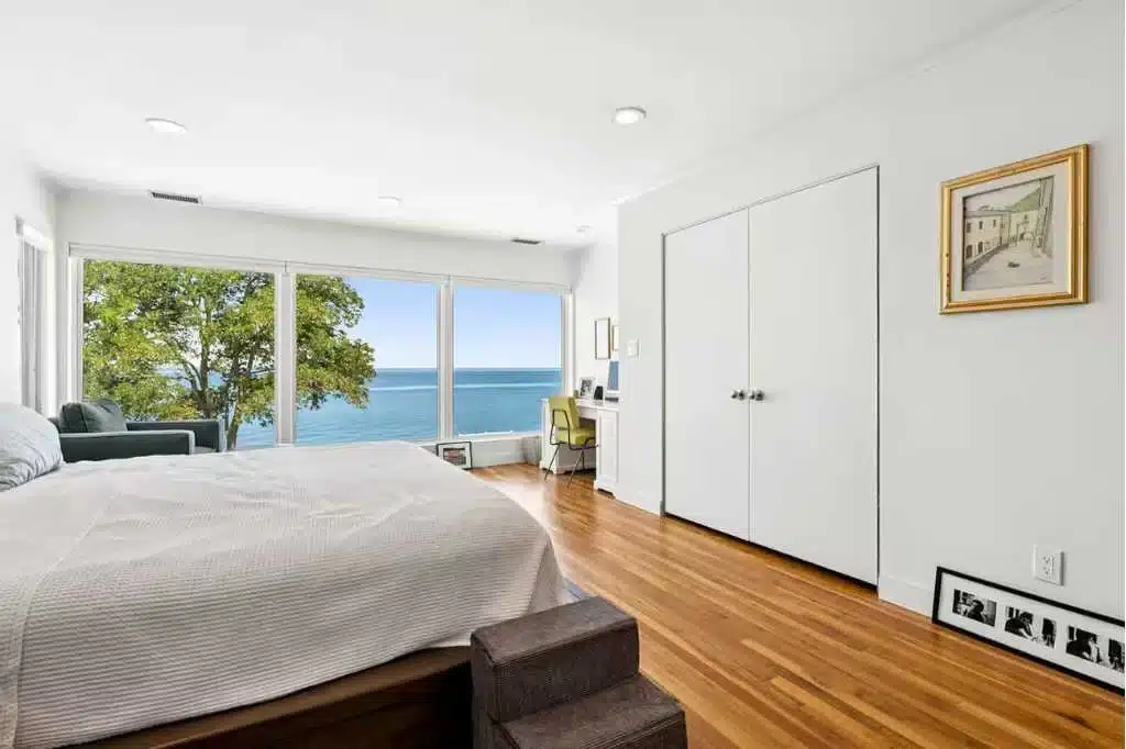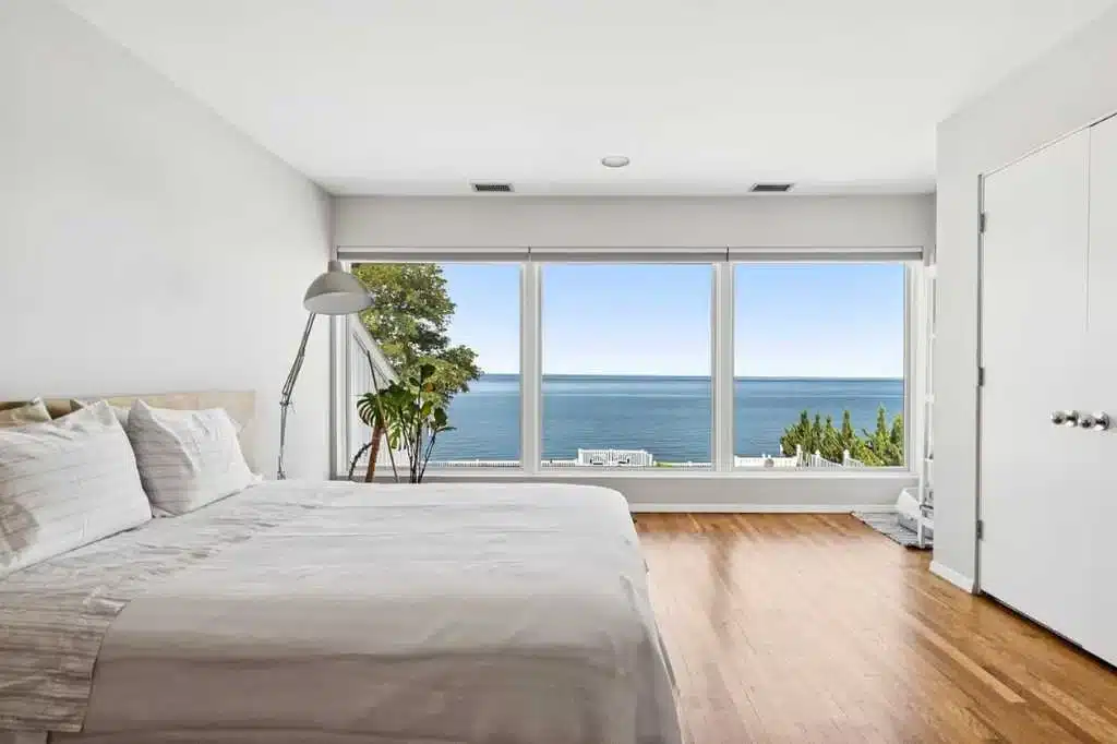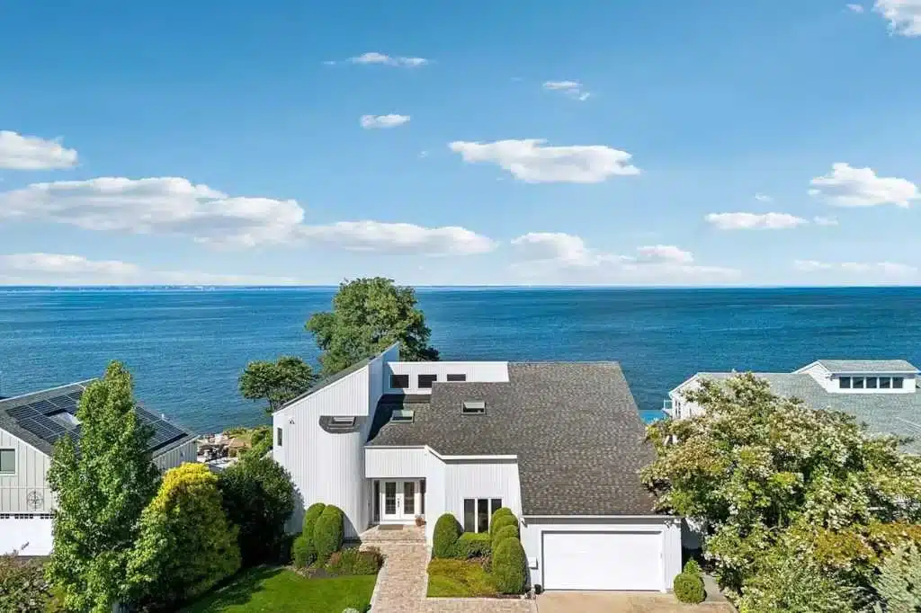 This waterfront venue is set directly on the shoreline of the Long Island Sound, and is designed around sweeping water views. The ocean is the focal point of every main living space and three of the four bedrooms, creating a setting where the horizon is always in sight.